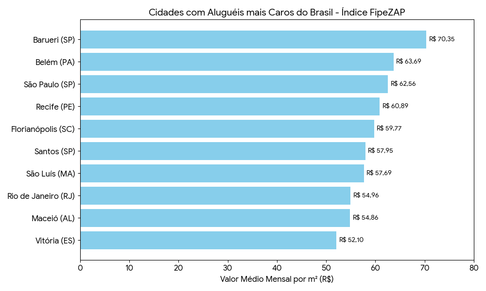 Em dezembro de 2024 esse mesmo levantamento apontou que a cidade ocupava o 5º lugar no ranking das capitais brasileiras com os preços mais elevados de aluguel residencial.
