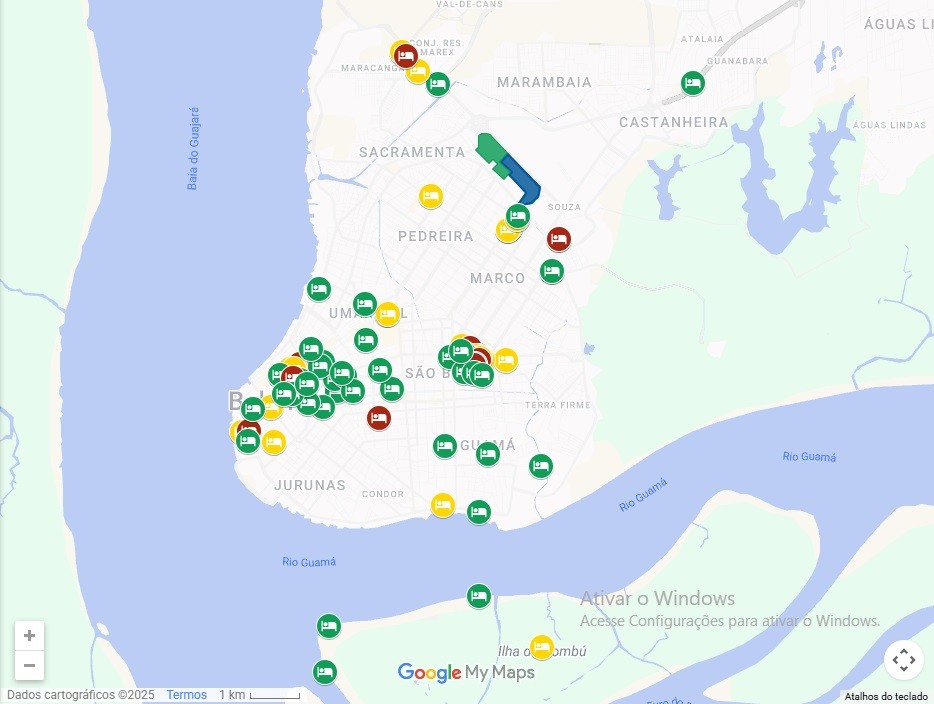 O resultado é um mapa interativo de hospedagens, pensado como um guia prático para quem chega à capital paraense. Confira a seguir o mapa. Se precisar de ajuda, use nossas instruções.