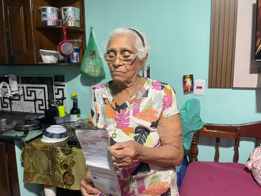 Quem também sofre com as altas taxas de energia é Beatriz Nunes Amorim, aposentada de 82 anos e avó de Washington. Vizinha do neto, ela mora sozinha em um cômodo com banheiro que mede seis metros quadrados. Em sua casa, tem uma geladeira, um ventilador, uma televisão e um fogão elétrico. A idosa denuncia que a sua energia já chegou a R$ 300, mas com muita economia conseguiu reduzir cerca de 30% da conta.