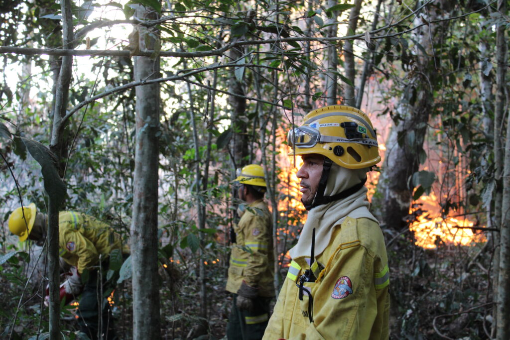 Em poucos minutos, um brigadista soprou um apito de alerta, sinalizando que as chamas tinham escapado para a mata, e convocando os agentes para correr com bombas d’água.