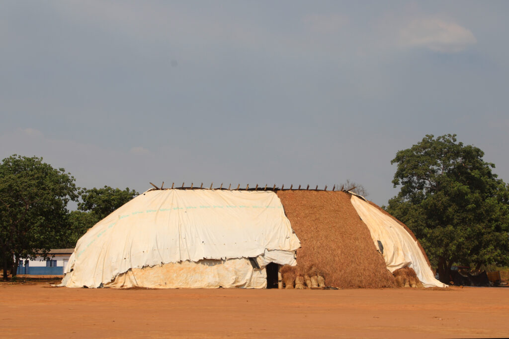 Mas, no lugar do telhado tradicional de sapé, a oca está recoberta por uma lona plástica branca, decorada com o logotipo de uma marca e o aviso em inglês “apenas para uso agrícola”. O telhado é um dos vários sinais da expansão da pecuária e do cultivo de soja na borda sudeste da Amazônia, uma região altamente desmatada, onde a floresta tropical vem se aquecendo mais rapidamente, e em que a estação seca já ganhou várias semanas nas últimas décadas.