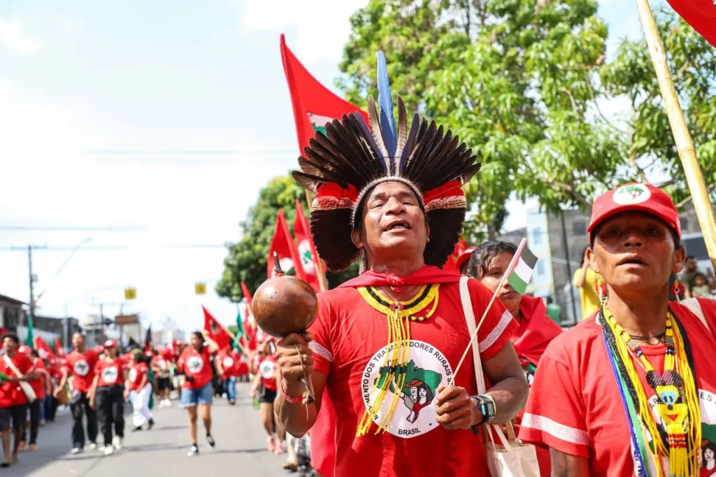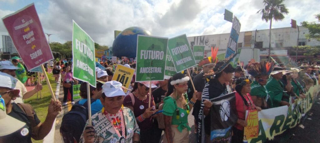 Durante o cortejo de 4,5 quilomêtros, os participantes reivindicaram diversos direitos como demarcação das terras indígenas, reforma agrária, restauração de manguezais, transição energética e o fim dos combustíveis fosseis