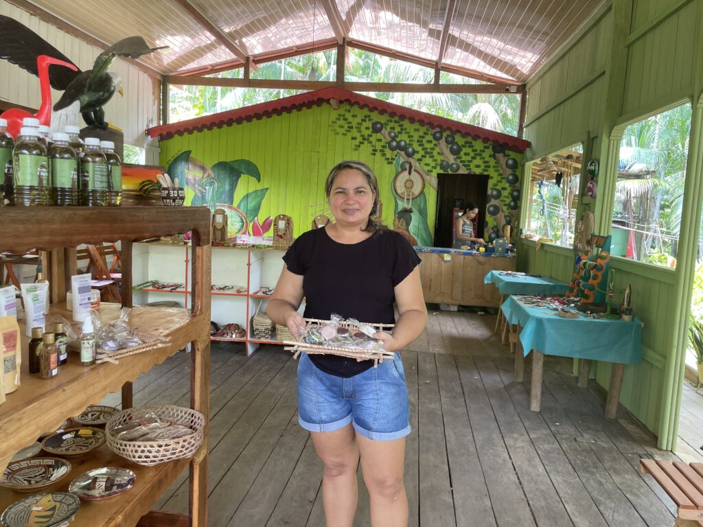 Iracema dos Santos  mantém um espaço cultural onde oferece turismo sustentável e vende produções da comunidade local.